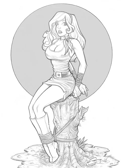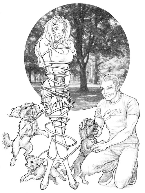 In the "real" world | you take a few dozen super-cute young ladies and put them in tight clothes | wrap them in ropes and pose them in all sorts of uncomfortable and sexually provocative positions -- you're gonna get a visit from your local law enforcement agency! How delightful it is to realise you are not trapped in this "real" world | but safely ensconced in artist Steve O Reno's land of lovely ladies and inescapable situations! Steve's mind is overflowing with devious ideas | and in this second volume of erotic discomfort | he really shows the heights (and depths) he's capable of!